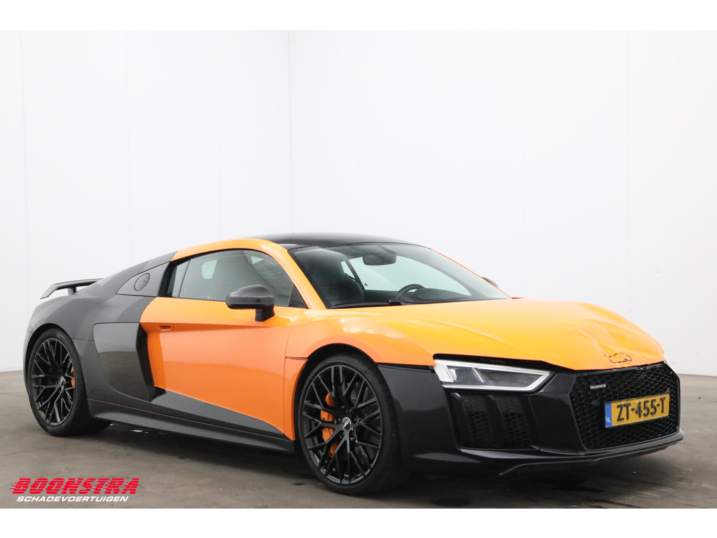 Diverse beschadigingen voorzijde, Auto is in geparkeerde toestand aangereden! *Alle airbags oke, Compleet kenteken, R8 Plus met keramische remmen!!, Voorzien van Akrapovic sportuitlaatsysteem, EU-prijs 79950 euro*
