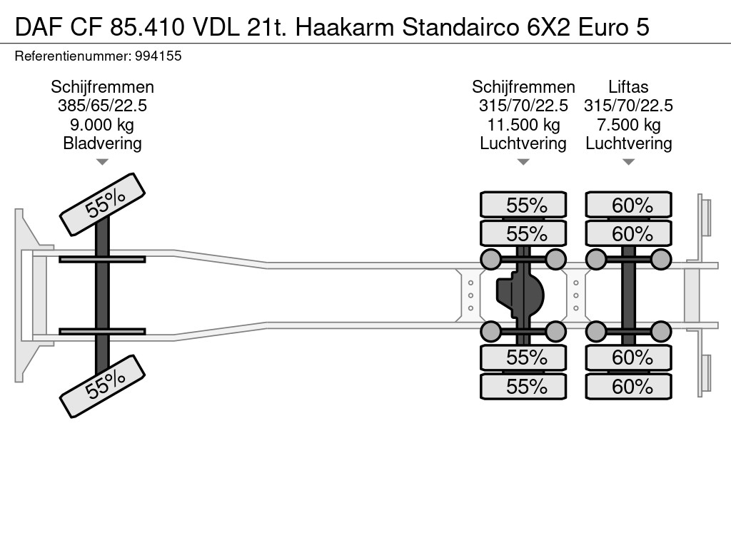 DAF CF 85.410 VDL 21t. Haakarm Standairco 6X2 Euro 5