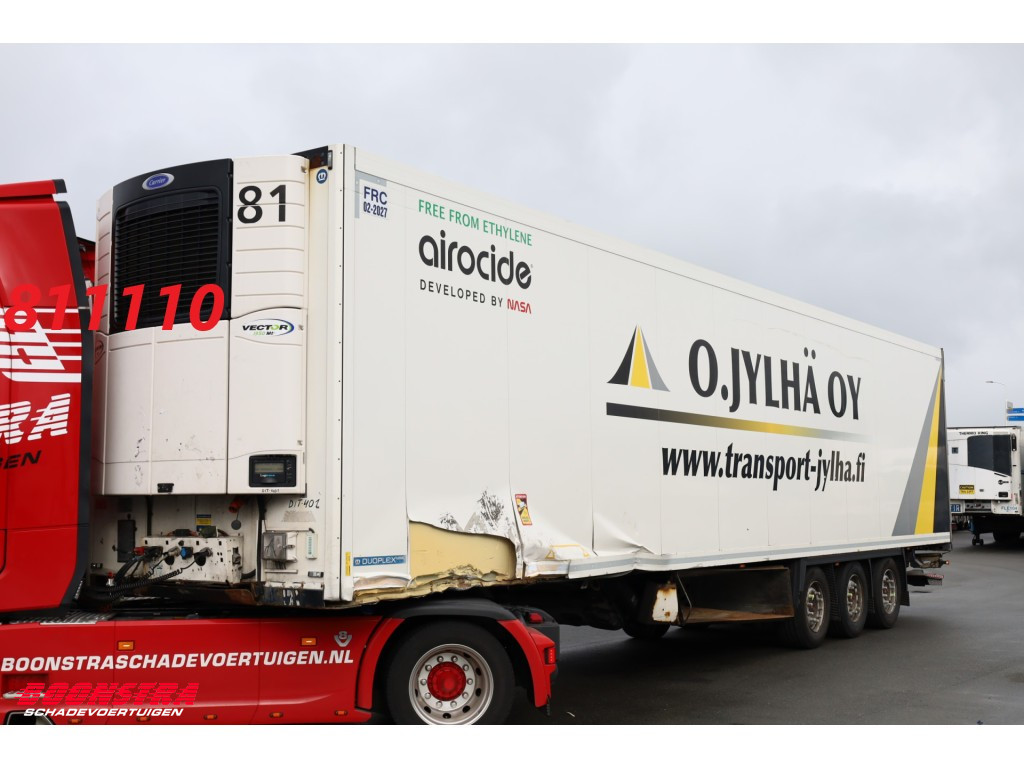 Linker en rechter zijschade, Oplegger kan rijdend mee! *Fins kenteken, Voorzien van Carrier Vector 1950 MT koelmotor, Dieseluren: 9.992 uur, Voorzien van Dhollandia DHSMR.20 (2.000 kg) laadklep, Afmetingen laadruimte: 1340 X 250 X 275 cm, Prijs is netto/excl. BTW*