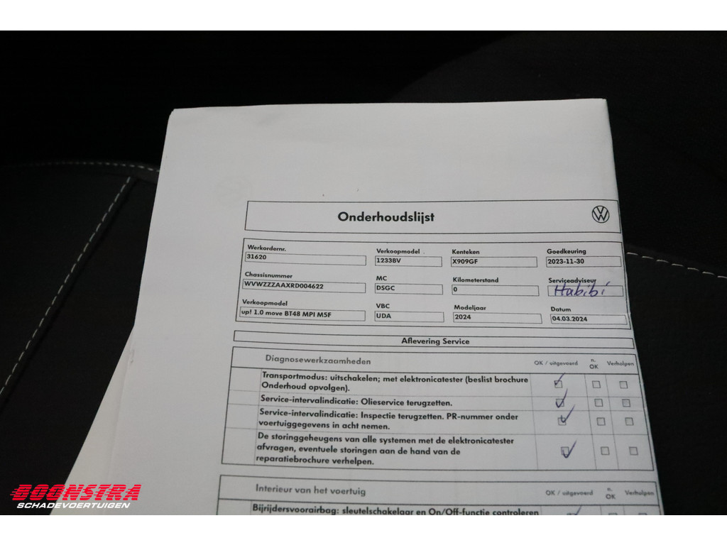Linker zijschade, Dakairbag links defect, Stoelairbag links defect, Gordelspanner defect *Compleet kenteken, Leuke Up! met bluetooth!*